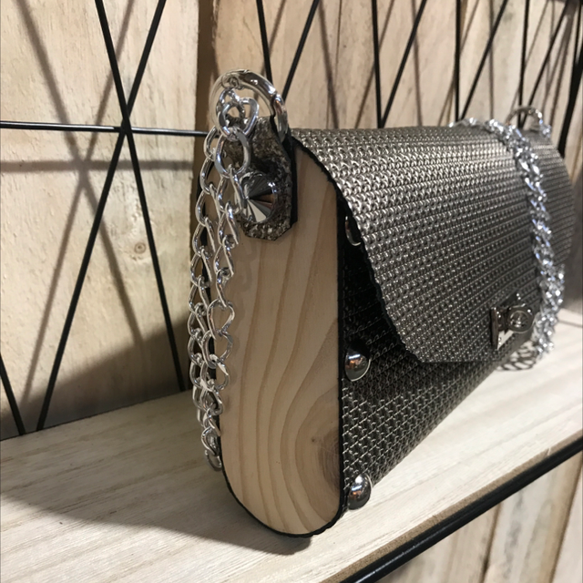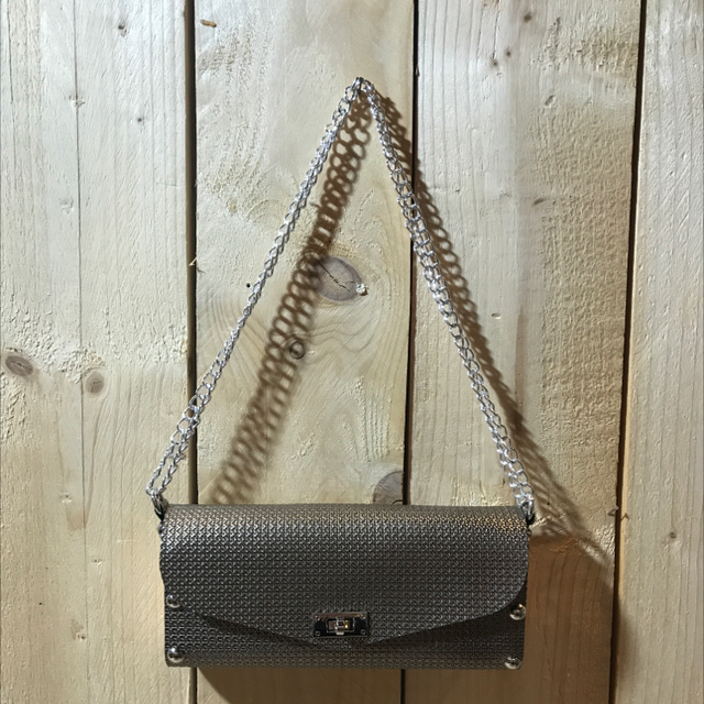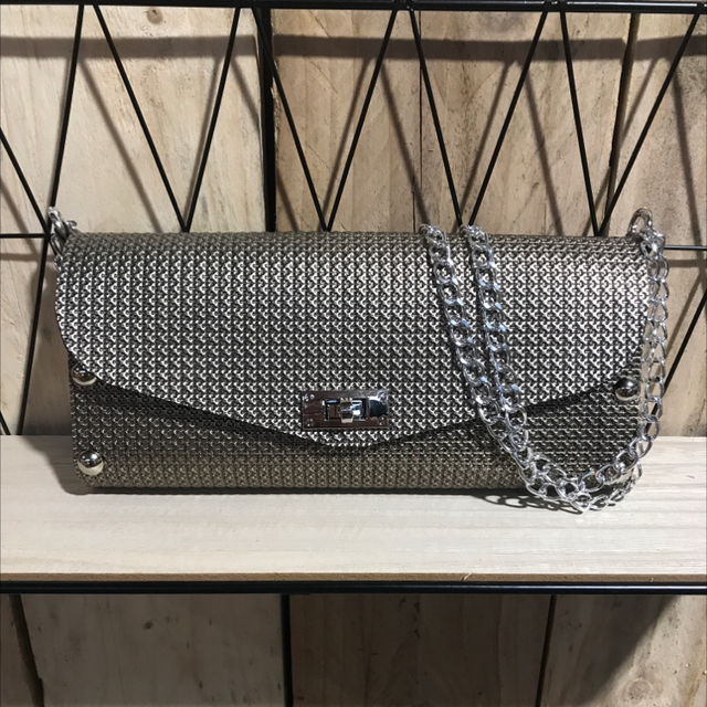 Bouclerie argentée et chaine de sac réglable 3 positions : en bandoulière ou porté épaule long ou court.