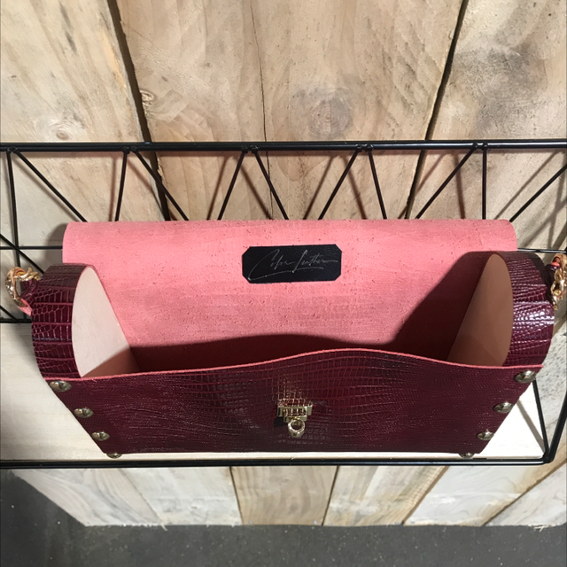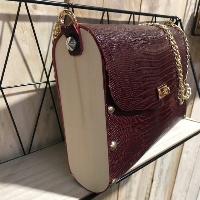 Cuir de veau façon lézard bordeaux et bois