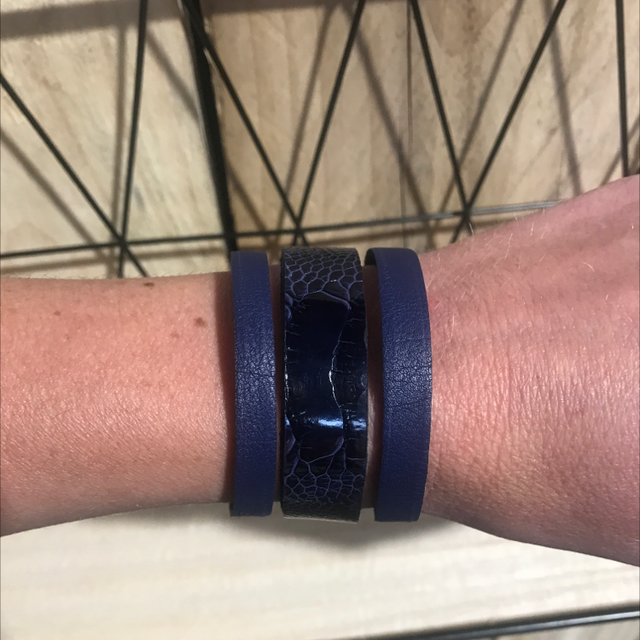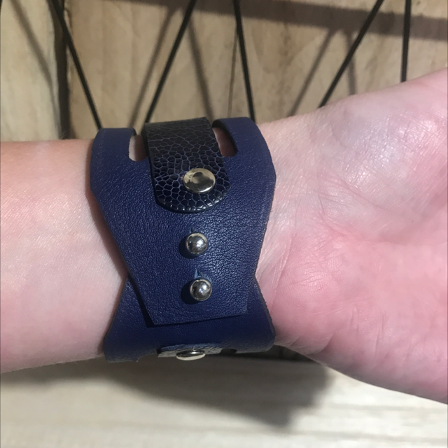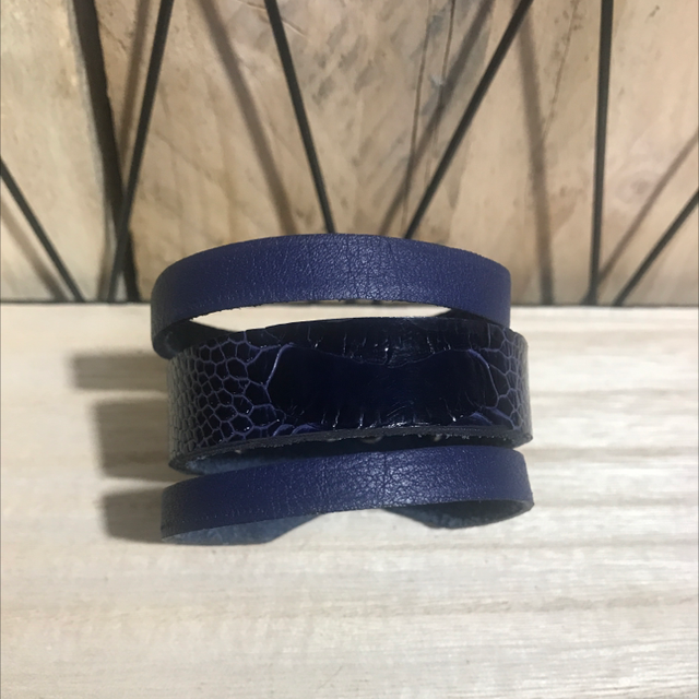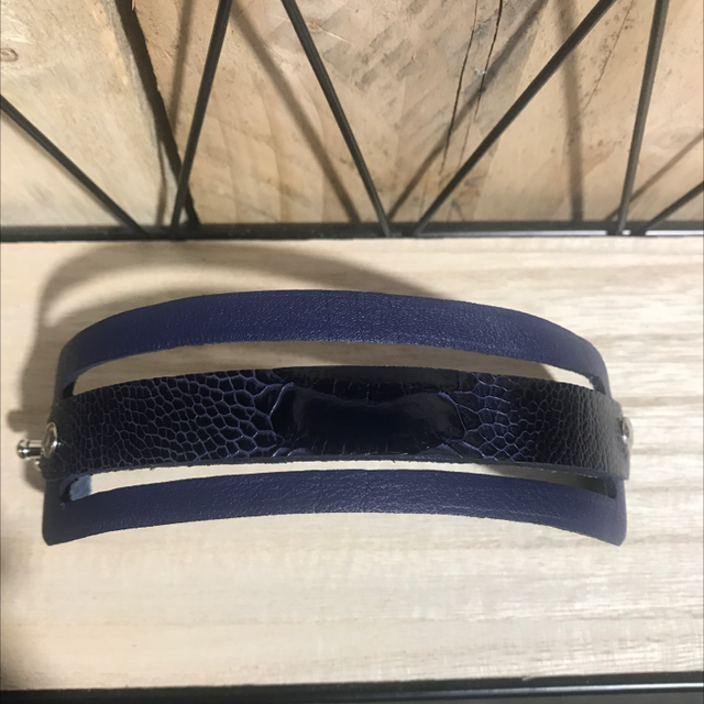 Manchette en Cuir de Vachette et Pâte d’Autruche Bleu Marine