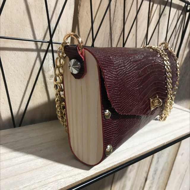 Cuir de veau bordeaux imprimé façon lézard et bois