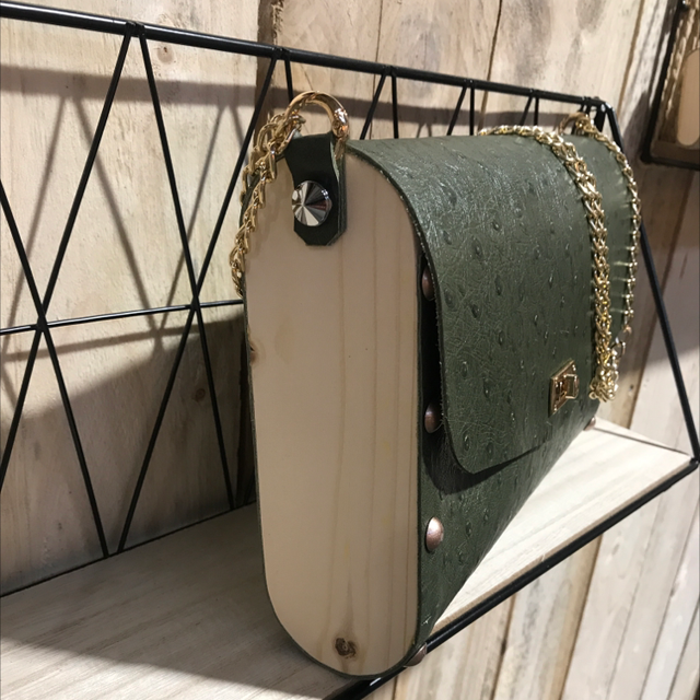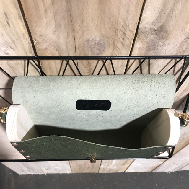 Cuir de vache kaki façon autruche et bois